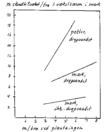 - Håndpodninger vokser hurtigere til ved drypvanding i potte end ved udskoling i marken (Christensen 1974)