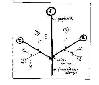 Bilag 2-20. Opbygning af blomsterstand hos jordbær, med primær, sekundære, tertiære og kvaternære blomster.