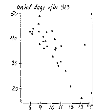 Bilag 2-22. Sammenhæng mellem blomstringstidspunkt og gennemsnitlig maksimumstemperatur februar, marts, april. Æble, England. Efter Jackson & Hamer (1980).