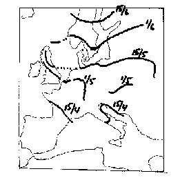 Bilag 2-23. Beregnede blomstringstidspunkter for æble forskellige steder i Europa. Efter Kronenberg (1985)