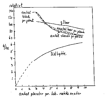 Udbyttet pr. arealenhed stiger også med stigende planteantal; virkningen er kraftigst, når årsagen er forskellig rækkeafstand (bilag 13-20). På grund af ringe plantepris, hurtig bæring og relativt "små" planter vil det være forsvarligt at vælge et stort planteantal pr. ha hos jordbær. Det højere hektarudbytte ved en lille planteafstand hos jordbær er stort set forsvundet det andet bæreår; dette gælder også i stort omfang fordelen ved en lille rækkeafstand (bilag 13-20).