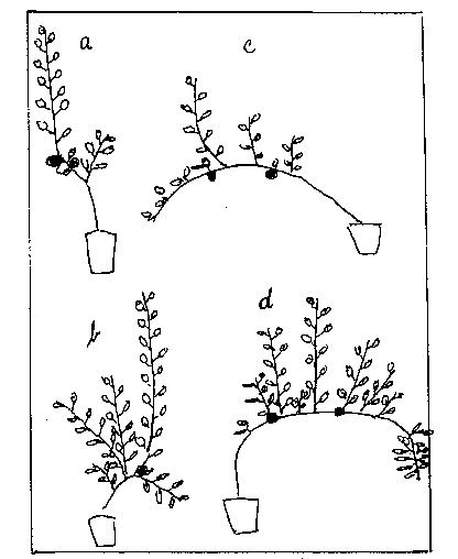 Det er stort set det samme, som vi i dag kunne kalde en forøgelse i toppens sink-aktivitet (væksthastighed) forårsaget af reduktion i top/rod-forhold ud fra følgende betragtning: Roden forsyner toppen med stoffer, som fremmer toppens vækst. Reduceres topandelen, vil de resterende dele kunne få en bedre forsyning med disse stoffer fra roden, svarende til en større koncentration i topdelene og en større vækstfremmende virkning. Abbott's illustration (bilag 14-2) viser betydningen af top/rod-forhold for vækstaktiviteten og vækstens varighed i de enkelte skud. Forsyning af roden med næringsrig (kvælstofrig) jord tyder ligeledes på, at forholdet mellem topmængde og rodaktivitet spiller en rolle for vækstaktiviteten i de enkelte skud.