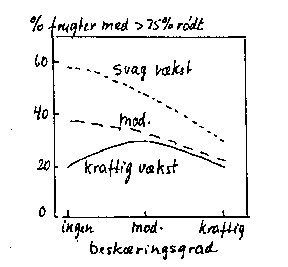 Bilag 14-4. Virkning af beskæring på skudtilvæksten i æble. Efter Christensen (1965a).