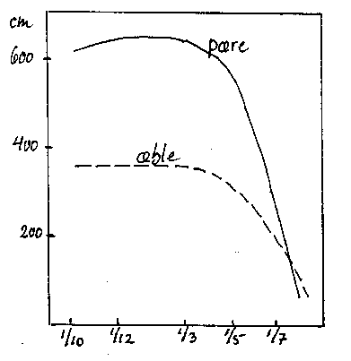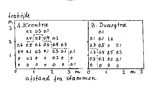 Bilag 14-5. Virkning af beskæring på træstørrelsen (m). Efter Christensen (1965a).