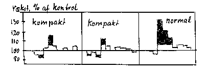 Bilag 15-1. Vækststof (auxin)-aktivitet, illustreret ved søjlehøjde, i skud af normal og kompakttyper af 'Cortland', vist ved Avena-internodie-vækst efter kromatografisk adskillelse. Efter Jindal et al. (1974).