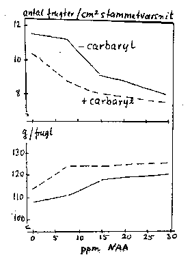 Carbaryl (napthyl-N-methyl-carbamat) er i virkeligheden et insectisid og kan derved bl.a. ødelægge nytteinsketer. Virkningsmekanismen ved udtynding kendes ikke. Det kan bruges indtil 3 uger efter blomstringen (bilag 15-19).