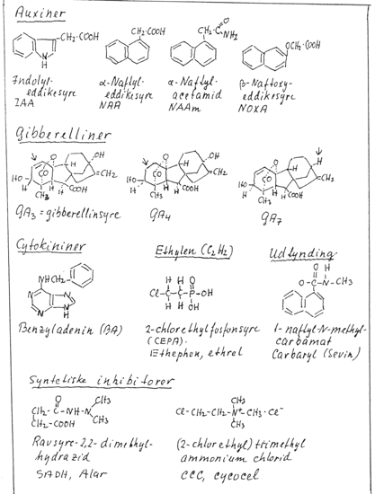Vækststoffers betydning er berørt flere gange i de foregående afsnit. Her følger derfor kun en oversigt over de forskellige grupper, hvor samtidig mere fundamentale forhold er trukket frem. Med hensyn til den praktiske anvendelse af kemiske vækstregulatorer under hensyntagen til art, sort, koncentrationer, tilførselstidspunkter etc. henvises til anden litteratur.