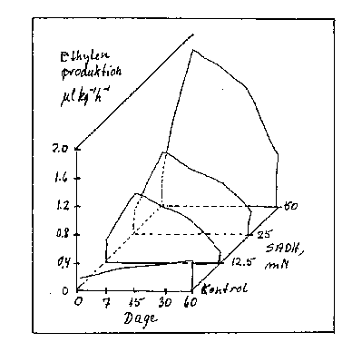 Bilag 16-7. Virkning af SADH på ethylenudvikling i æbleskudspidser. Efter Jindal et al. (1975).