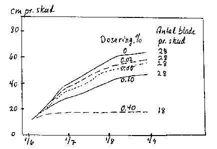 Bilag 16-8. Virkning af SADH-dosering (pct. Alar) på skudlængde og bladantal (Anon. 1970).