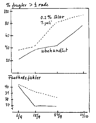 Bilag 16-12. Virkning af SADH på farve og fasthed hos 'McIntosh' (Grauslund & Christensen 1977).