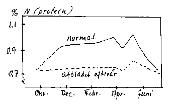 Bilag 19-3. Sæsonændringer i protein-N i æblebark (Faby & Naumann 1987).
