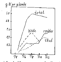 Bilag 19-8. Kvælstofoptagelse i forskellige organer af solbærbuske. Efter Larsen (1964).