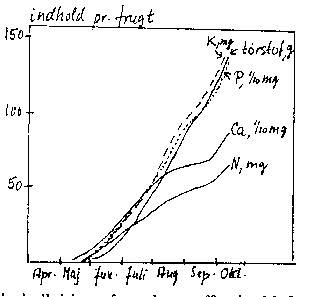 Bilag 19-9. Sæsonmæssig indlejring af næringsstoffer i æblefrugter. Efter Jones et al. (1983).