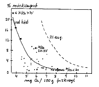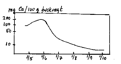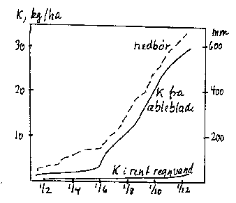 Bilag 19-10. Sæsonmæssig udvaskning af kalium fra æbleblade. Efter Dalbro (1955).