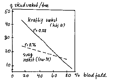 I løbet af de sidste par uger inden løvfald vandrer der kvælstof fra bladene ind i træet, idet bladenes kvælstofkoncentration falder, mens den stiger i træets øvrige dele. Denne indvandring kan forstærkes ved sprøjtning med urea i ret høje koncentrationer (bilag 19-1), idet bladsvidninger på grund af sprøjtningen kan accepteres på dette sene tidspunkt. Cirka halvdelen af bladenes kvælstof- og fosformængder vandrer ind i træerne før løvfald. Indvandringen er mindre for kalium og ubetydelig for calcium og magnesium (bilag 19-2).