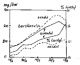Bilag 20-25. Virkning af daglig drypvanding (17.5.-2.8.) enten med samtidig N-tilførsel (g N/pr. træ) eller med rent vand efter bredstrøning af N forår (kg N/ha). Holland. Efter Bolding (1987).