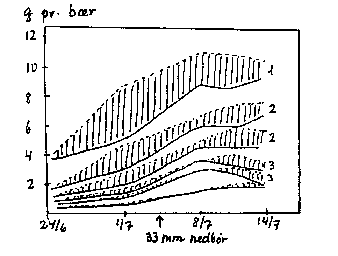Bilag 20-1. Virkning af "drændybde" på tilvæksten hos æbletræer (Hansen 1974).