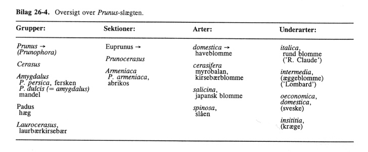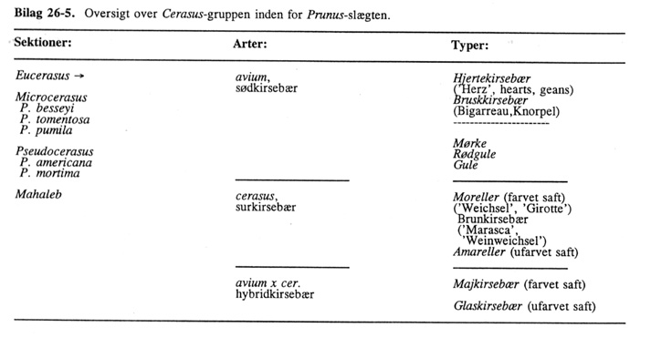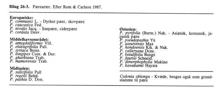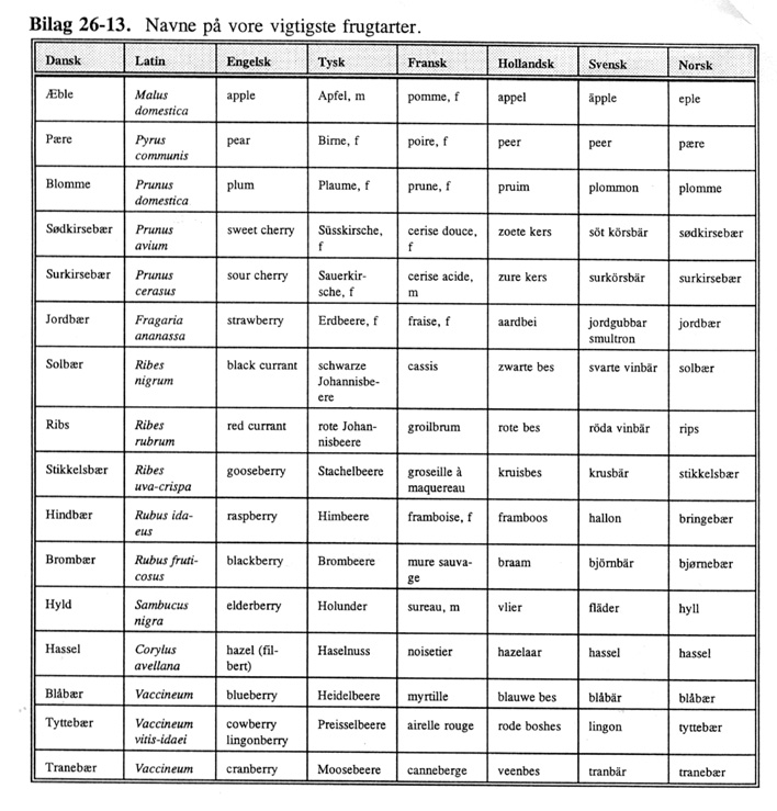 Bilag 26-1. Botanisk oversigt over frugtplanter i den tempererede zone. Efter N. Jacobsen m.fl.