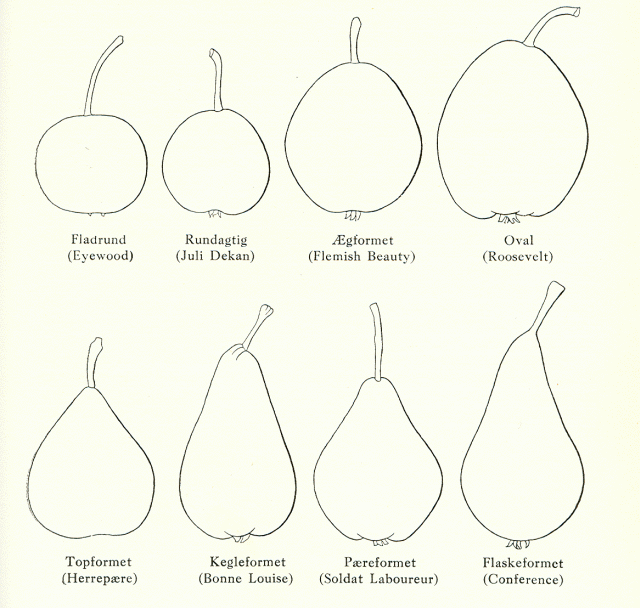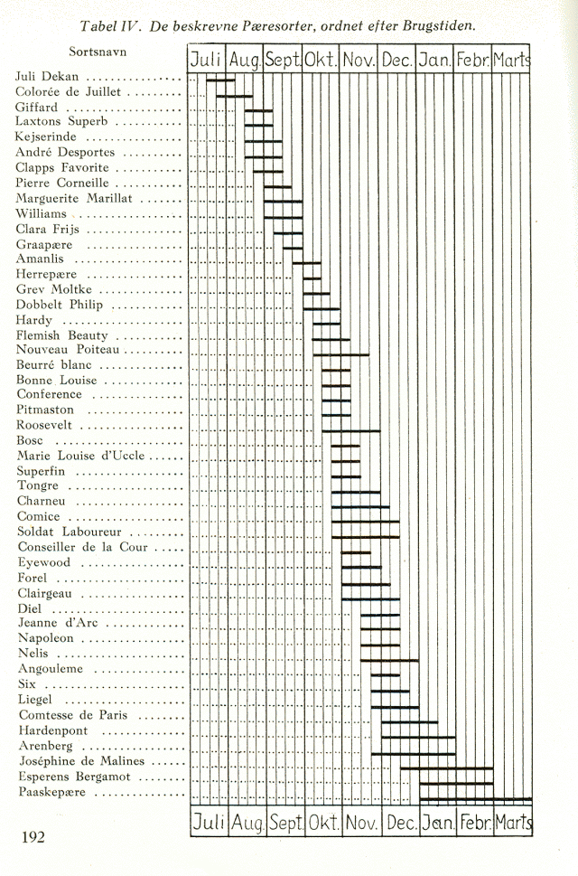 Til Slut skal bemærkes angående Sortsvalget, at det har voldt Vanskelighed "at afgøre, hvilke Pæresorter der skulde medtages i »Danmarks Frugtsorter«. Det vilde have været ønskeligt, om Sortsantallet kunde have været forøget. Adskillige af Værkets Brugere vil sikkert savne Comte de Chambord, Congres, Curé, Emil Heyst, Esperine, General Totleben, Herzogin Elsa, Laxtons early Market, Olivier de Serres, Précoce de Trévoux, Triomphe de Vienne, Urbaniste m. fl. Forhåbentlig vil der til sin Tid kunne udsendes et helt Bind med Pæresorter.