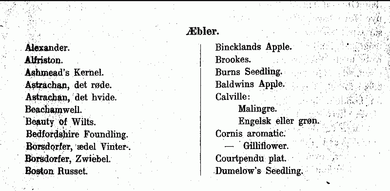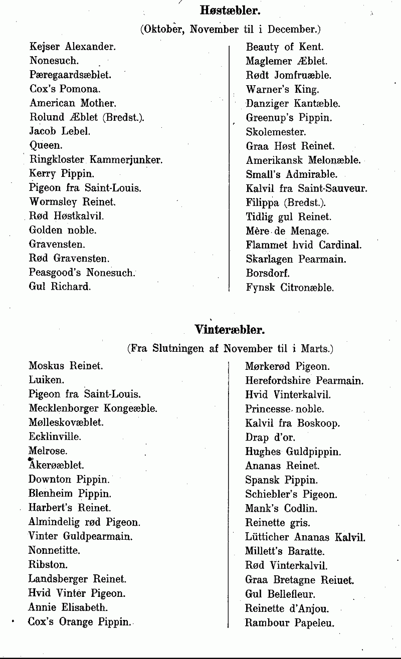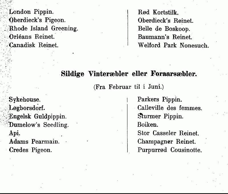 Liste over forskjellige Udvalg af Æblesorter ................... 480