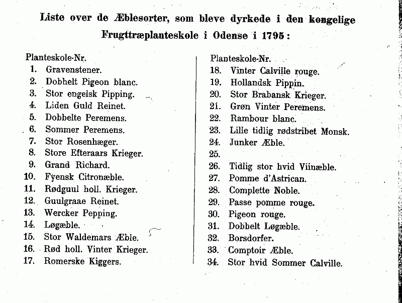 I Slutningen af det 17de Århundrede nævnes Prins Jørgen, der anvendte alle Indkomsterne af det ham forlenede Vordingborg Amt til Godsets bedste og således blandt andet holdt Urtegårdsmænd, som måtte plante Frugttræer i Bøndernes Haver. Herfra skriver det sig, at det sydlige Sjælland hører til de Egne. af Danmark, der levere megen Frugt. Ved Omtalen af det Petergårdske Skovdistrikt i samme Amt bemærker Vaupell (De danske Skove S. 197 ff.), at Bønderne der benyttede Underskoven på en langt fordelagtigere Måde end andetsteds i Landet, hvor den væsentlig kun brugtes til Græsning; de behandlede den med Omhu og anvendte ikke alene Haslerne til Båndkjeppe og andre Træsorter til Træarbejder, men plantede også Humle og podede Æbletræer, som i den gode Jordbund og gunstige Læforhold gav en rig Høst af Frugter.