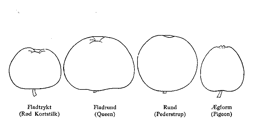 Formen er beskrevet. De vigtigste Former er illustreret nedenfor. Bugen kaldes det Sted på Frugten, hvor denne har sit største Tværmål.