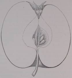 Beskrivelse af Frugten: — Størrelse og Form: stort, i jævn god Udvikling ca. 84 mm bredt, 78 mm højt, ofte større, men også ofte lidt mindre, rundt afstumpet kegleformet eller næsten rundt, Bugen på eller lidt under Midten, bredt afstumpet ved Bægeret, den ene Halvdel altid stærkere udviklet. — Bæger: meget stort, åbent, Bladene lange, står lige op, bøjer Spidserne udad, dunede, er lidt adskilte ved Grunden; Hulen dyb, vid eller middelvid, Ribber flade, taber sig ved Bugen; Tværsnit omtrent rundt. — Stilk: middellang til lang, næsten tynd, glat, krum; Hulen dyb, middelvid til vid med gråbrun Strålerust. — Hud: citrongul, Solsiden med mere eller mindre rødt isprængt Striber og Flammer; Punkter talrige, store, brune med bred, klar Hov. Kraftig Lugt og fedtet. -- Kærnehus: lille, højt løgformet, Aksen snæver, Rum små, tilspidsede opad, rundt tilspidsede nedad, åbner sig spatelformigt, Vægge sprængte, Kærner store, rundt ægformede, kaffebrune.—Bægerrør: en skarp Kegle, Tråde lidt under midtstillede, Griffel kortkløvet, glat. -Kød: hvidt med gulgrønne Årer, marvet, meget saftfuldt, sødt vinagtigt med god Aroma. — Modningstid: December-Marts eller lidt længere. —Værd: meget god Bordfrugt og meget smuk Salgsfrugt. — Megen Opmærksomhed værd.