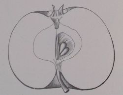 Svag eller ingen Lugt, svagt fedtet. — Kærnehus: lille, fladrundt, Aksen